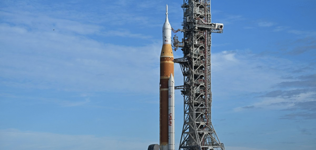 Nasa’s mega rocket has been moved to the launch pad in Cape Canaveral, Florida, as the final preparations get underway for the first crewed mission to the Moon in more than 50 years.